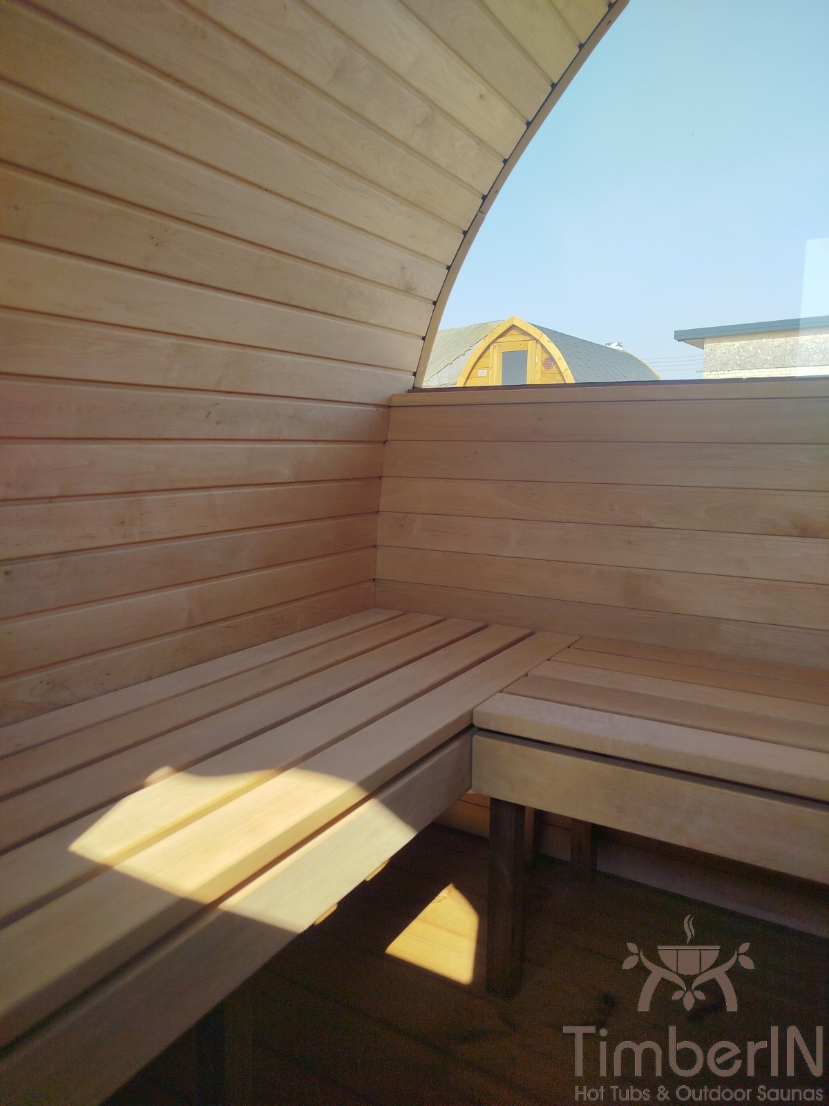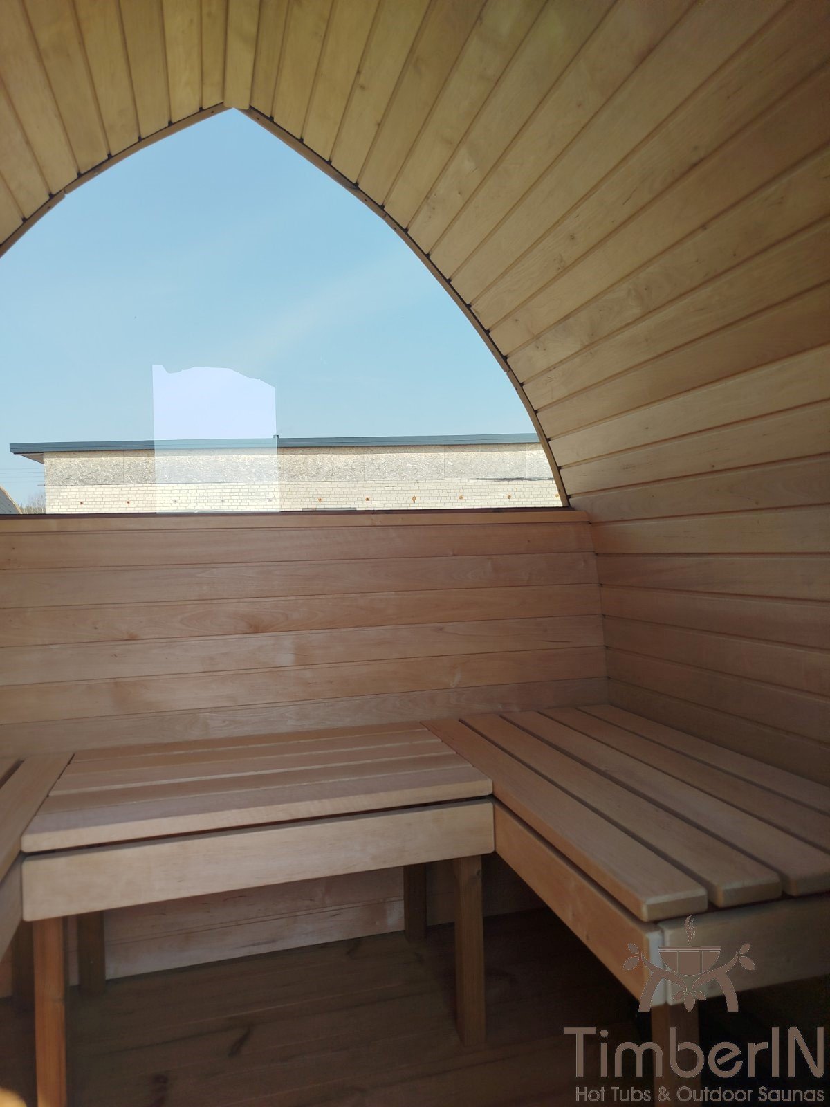 - Drewno Wysokiej Jakości: Sauna jest wykonana z trwałego, premium drewna, co zapewnia długowieczność i tworzy naturalną, przyjemną atmosferę.