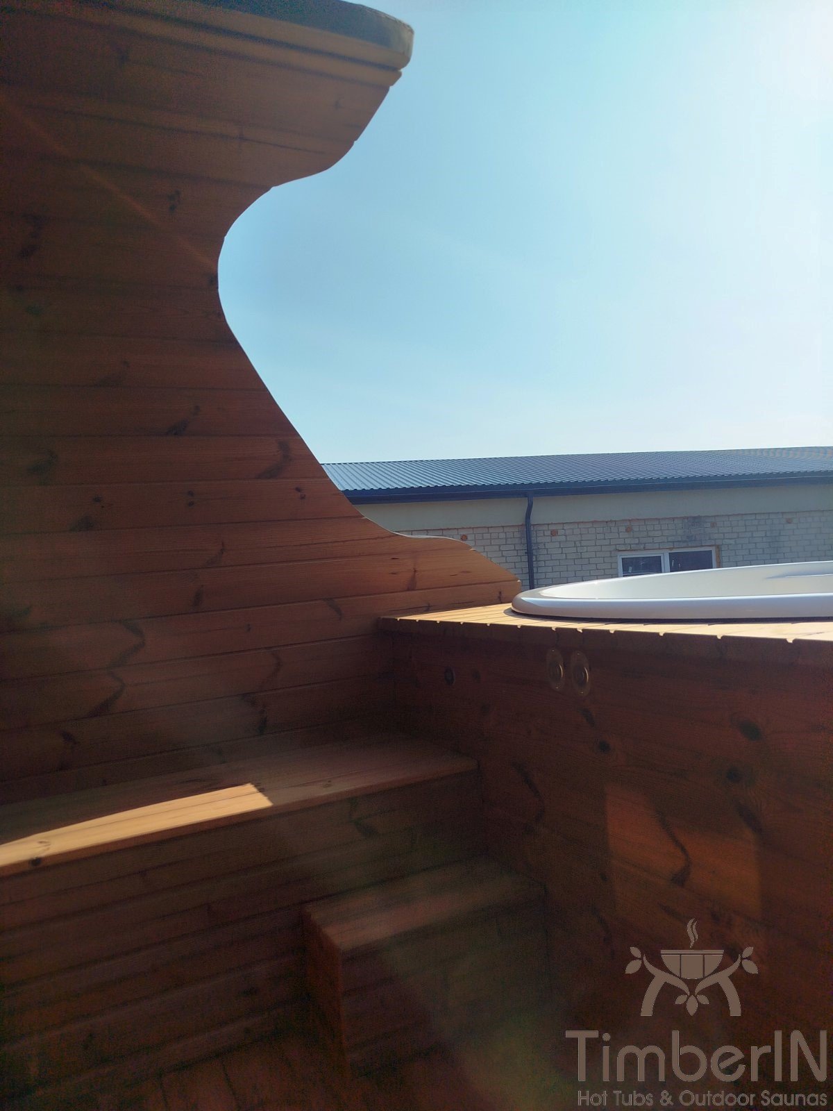 Zintegrowana wanna z hydromasażem jest największą atrakcją tego produktu, oferując możliwość relaksu w ciepłej wodzie i rozluźnienia mięśni. Właściwości hydroterapeutyczne wanny wspomagają krążenie krwi i łagodzą napięcie mięśniowe, a wszystko to w towarzystwie wspaniałego widoku z prywatnego spa.
